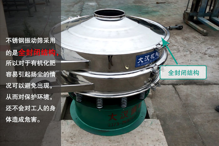 不銹鋼振動篩采用的是全封閉結(jié)構(gòu),所以對于有機(jī)化肥容易引起揚塵的情況可以避免出現(xiàn),從而對保護(hù)環(huán)境,還不會對工人的身體造成危害。