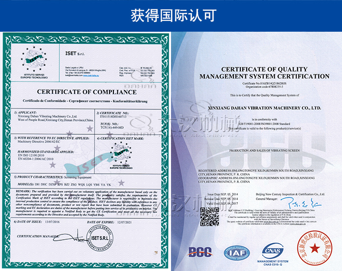我公司憑借著對質(zhì)量的高度管控,新鄉(xiāng)大漢直線篩分機(jī)質(zhì)量通過ISO國際質(zhì)量體系認(rèn)證和歐盟CE雙認(rèn)證,用戶無需擔(dān)心產(chǎn)品質(zhì)量問題。