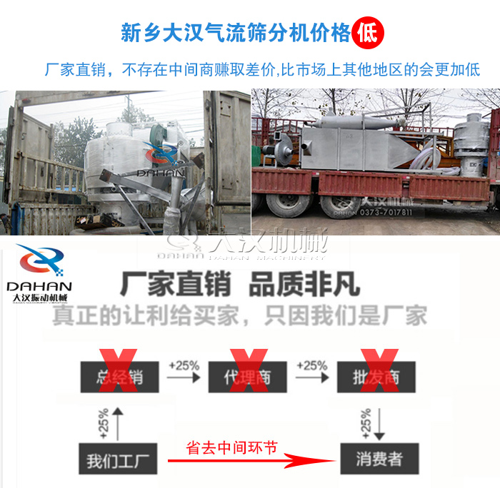 新鄉(xiāng)大漢氣流篩分機(jī)廠家直銷,不存在中間商賺取差價(jià),所以在大漢購(gòu)買氣流篩分機(jī)相比市場(chǎng)上其他地區(qū)的會(huì)更加低。